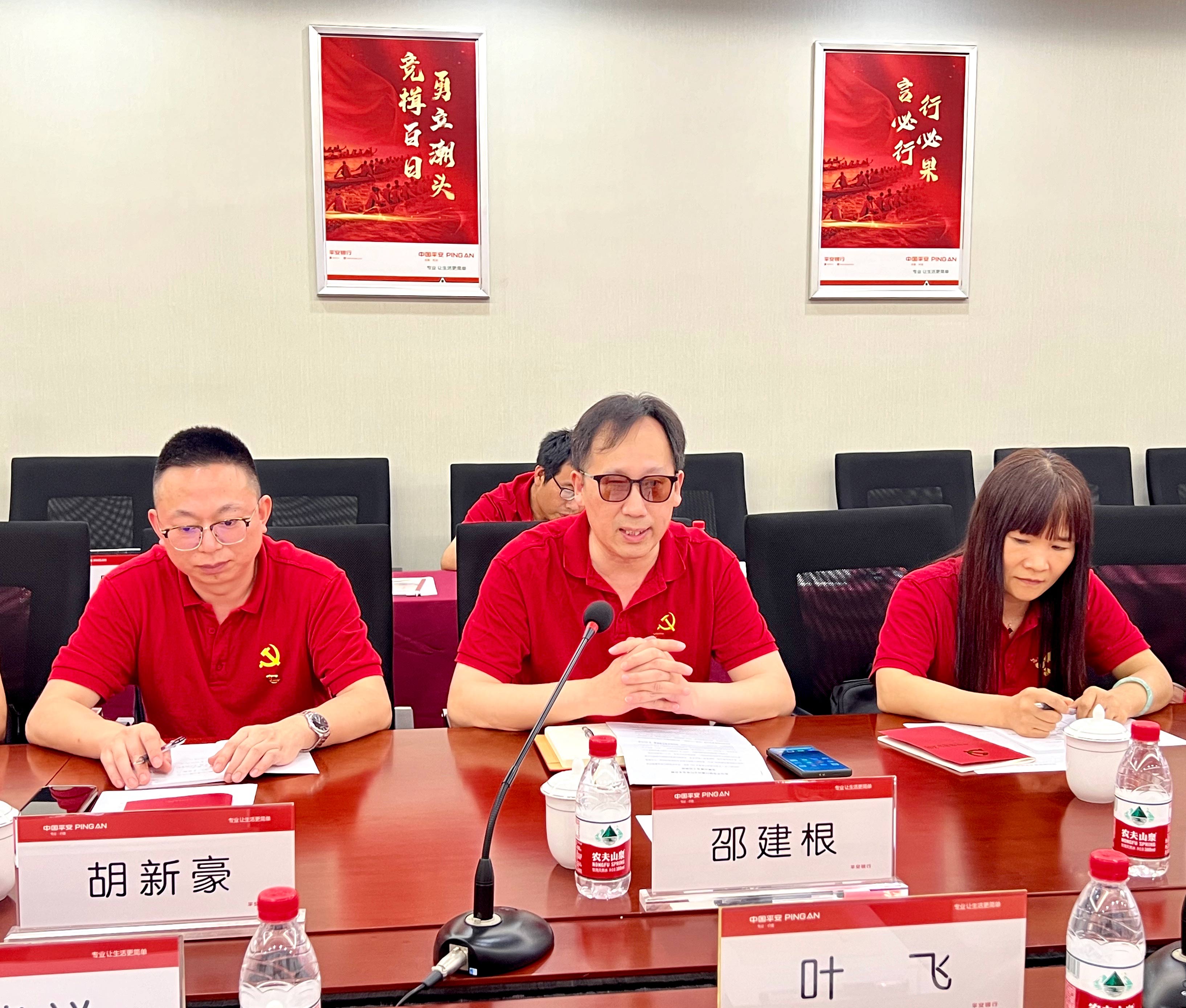 參觀(guān)結(jié)束后,所有黨員一同前往平安銀行紹興分行本部參加銀企座談會(huì)。在開(kāi)場(chǎng)中,葉飛行長(zhǎng)代表平安銀行紹興分行熱烈歡迎金廈集團(tuán)的黨員干部們來(lái)到紹興、走進(jìn)紹興分行,并對(duì)平安銀行的歷史沿革和業(yè)務(wù)脈絡(luò)進(jìn)行了簡(jiǎn)要介紹。葉行長(zhǎng)表示,金廈集團(tuán)是紹興分行合作時(shí)間最久的一家優(yōu)質(zhì)民企,雙方在長(zhǎng)達(dá)15年的合作中始終不離不棄,打下了深厚的互信合作基礎(chǔ),樹(shù)立了良好的銀企合作典范。他希望雙方未來(lái)以此次黨建共建為基礎(chǔ),進(jìn)一步加強(qiáng)交流、深化合作,共同開(kāi)創(chuàng)雙贏(yíng)未來(lái)。